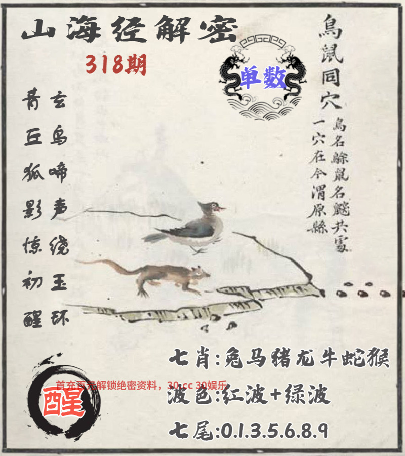319期:推荐六肖〖兔鼠鸡蛇羊龙〗开:鸡45准